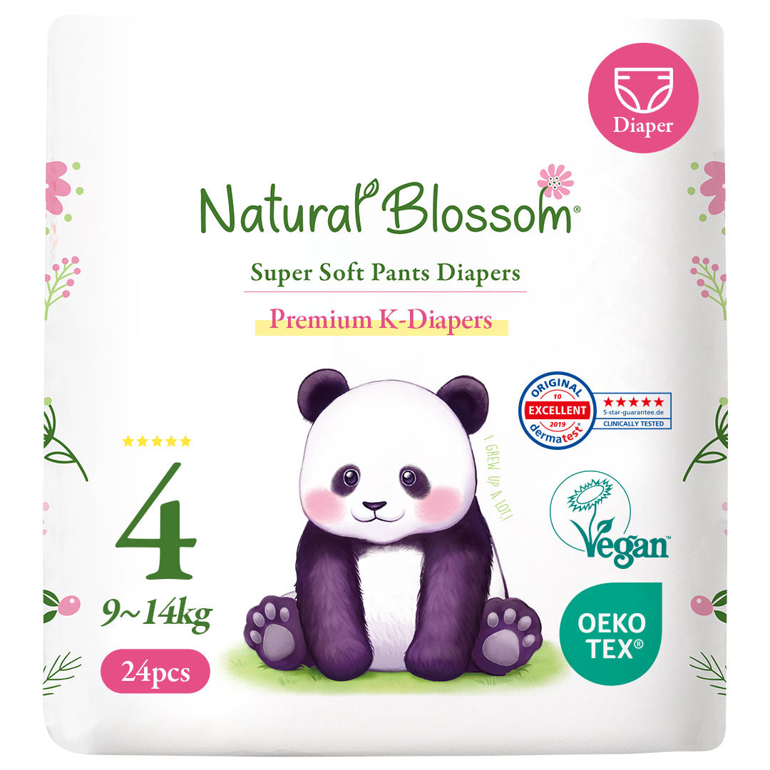 Natural Blossom Pull-On Baby Diapers | Ultra-Slim, Hypoallergenic, Super Soft, Vegan | Size 4 (2T-3T, 20-31 lbs) | 96 Count