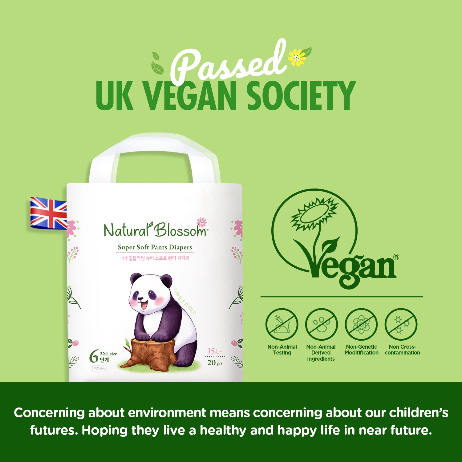 Natural Blossom Pull-On Baby Diapers | Ultra-Slim, Hypoallergenic, Super Soft, Vegan | Size 6 (4T-5T, 33 lbs+) | 80 Count
